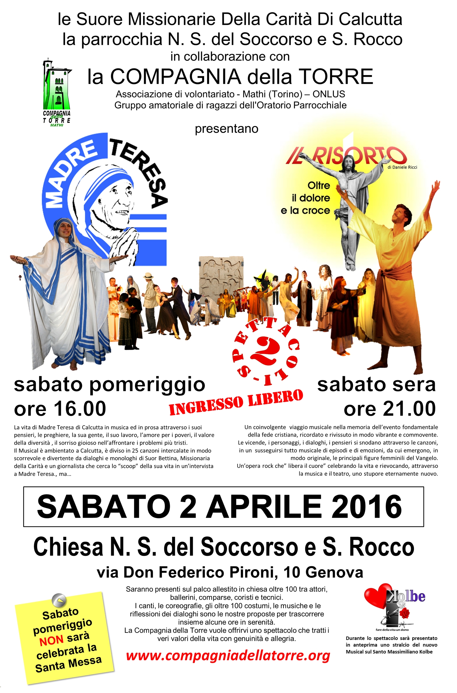 | Spettacolo in favore delle opere di misericordia svolte dalle Suore Missionarie della Carità di Madre Teresa di Calcutta